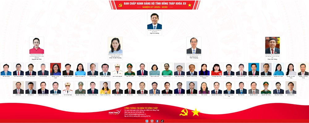 >> Mời xem thông tin chi tiết Danh sách Ban Chấp hành Đảng bộ tỉnh tại Chuyên trang Đại hội Đảng bộ tỉnh Đồng Tháp lần thứ I, nhiệm kỳ 2025 – 2030, trên Cổng Thông tin điện tử Đồng Tháp.