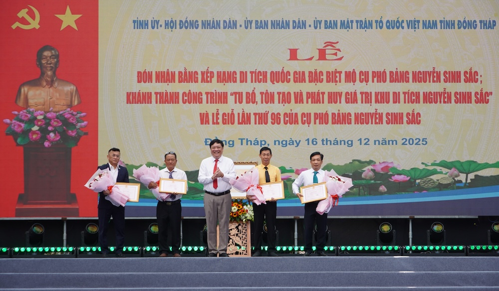 Trong không khí trang trọng, thiêng liêng và đầy ý nghĩa, sáng ngày 16/12 (nhằm ngày 27 tháng 10 năm Ất Tỵ) tại Khu di tích Nguyễn Sinh Sắc (phường Cao Lãnh), Tỉnh ủy, Hội đồng nhân dân, Ủy ban nhân dân, Ủy ban Mặt trận Tổ quốc Việt Nam tỉnh Đồng Tháp long trọng tổ chức Lễ đón nhận Bằng xếp hạng di tích quốc gia đặc biệt Mộ cụ Phó bảng Nguyễn Sinh Sắc, khánh thành công trình “Tu bổ, tôn tạo và phát huy giá trị Khu di tích Nguyễn Sinh Sắc” và Lễ giỗ lần thứ 96 Cụ Phó bảng Nguyễn Sinh Sắc.