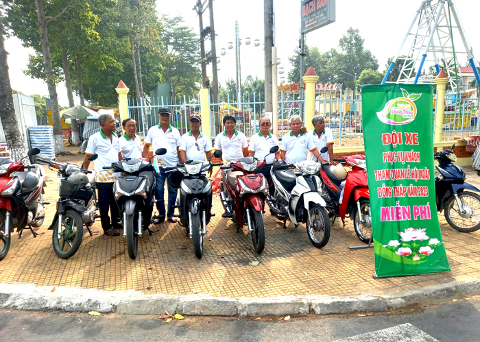Có tổng cộng 02 đội xe, với số lượng 30 xe mô tô phục vụ đưa, đón du khách đến các điểm tham quan vườn xoài, các điểm du lịch, di tích lịch sử trên địa bàn thành phố Cao Lãnh. Dịch vụ hoàn toàn miễn phí, với mục tiêu giúp du khách trải nghiệm thú vị trong thời gian đến với Lễ hội Xoài, cũng như đến với thành phố Cao Lãnh – Thủ phủ Đất Sen hồng.