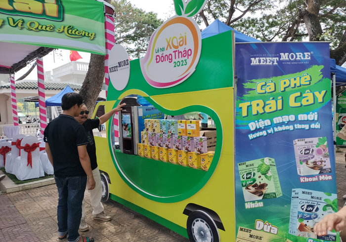 Cùng với đội xe phục vụ miễn phí, tại Lễ hội Xoài còn có phục vụ cà phê trái cây miễn phí, đặc biệt là cà phê xoài.