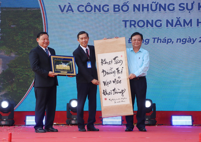 Chủ tịch Ủy ban nhân dân tỉnh Trần Trí Quang trao Giấy Chứng nhận quyền sử dụng đất cho lãnh đạo Trường Đại học Đồng Tháp