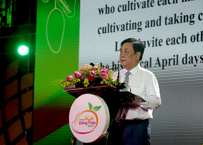 Người đứng đầu Ủy ban nhân dân tỉnh cảm ơn lãnh đạo Bộ Nông nghiệp và Phát triển nông thôn đã nhiệt tình hỗ trợ Đồng Tháp tổ chức thành công Lễ hội Xoài; chân thành cảm ơn các địa phương, đơn vị tài trợ và gần 100 đơn vị đã đăng ký tham gia trưng bày giới thiệu sản phẩm.