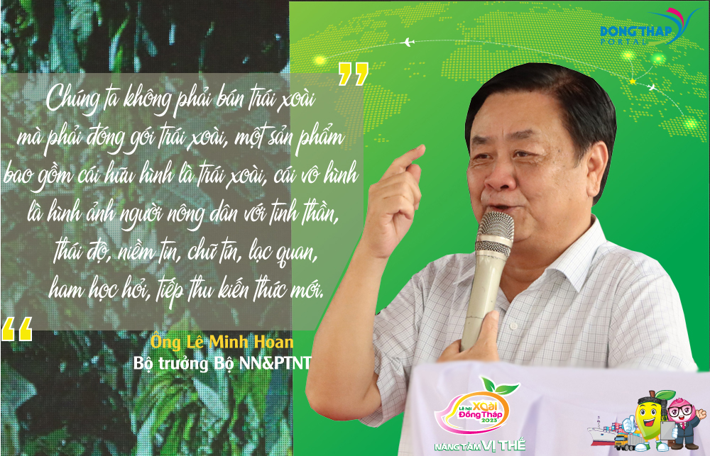 Trong bối cảnh có quá nhiều sản phẩm xoài tương đồng, Bộ trưởng Lê Minh Hoan mong muốn các nhà vườn trồng xoài Đồng Tháp phải chăm chút nhiều hơn cho trái xoài quê mình.