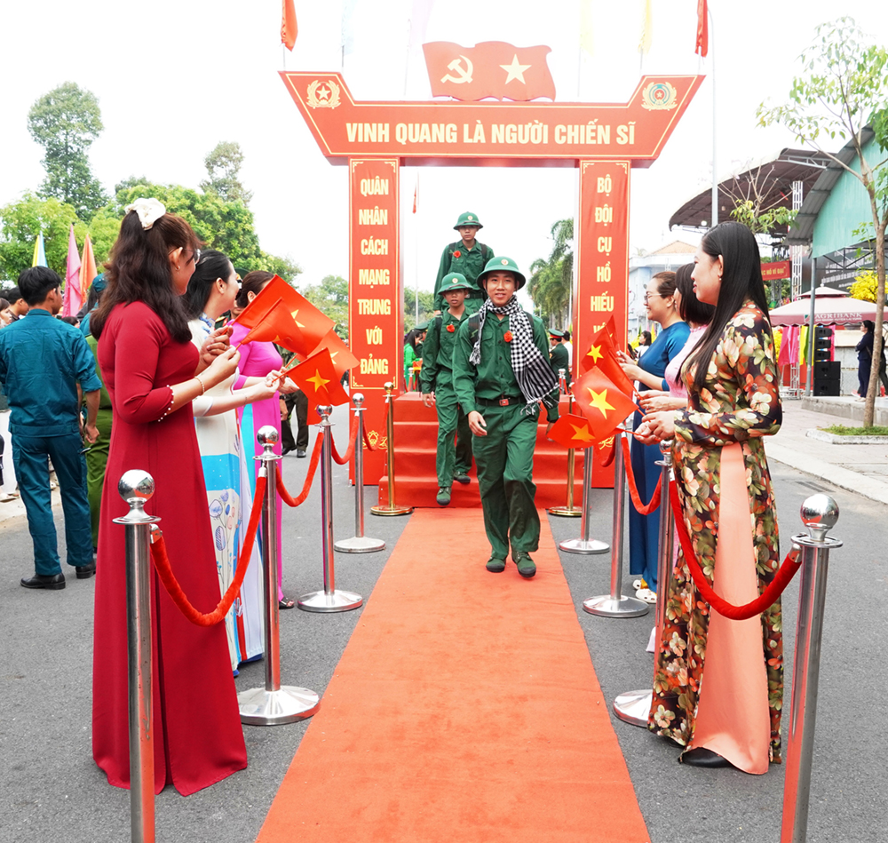 Tại buổi lễ, các đại biểu đã gặp gỡ, tặng hoa động viên tân binh lên đường nhập ngũ; bày tỏ mong muốn các tân binh luôn vững vàng ý chí, học tập, rèn luyện tốt trong môi trường quân ngũ để ngày càng trưởng thành, tích cực đóng góp sức trẻ bảo vệ Tổ quốc, xây dựng quê hương.