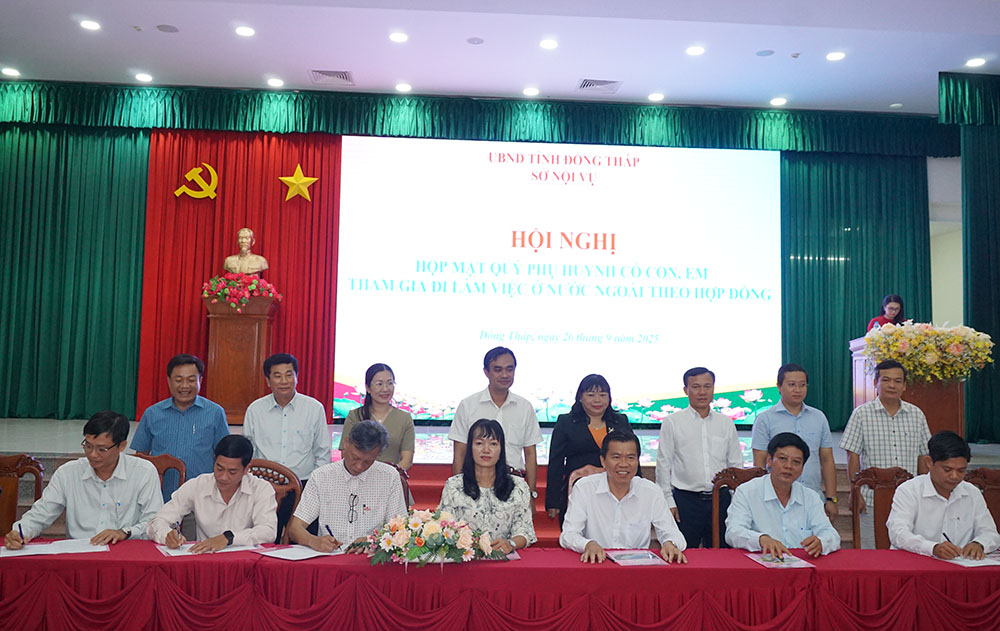 Ngày 26/9, Sở Nội vụ tỉnh Đồng Tháp tổ chức buổi họp mặt với 115 phụ huynh có con, em tham gia đi làm việc ở nước ngoài theo hợp đồng năm 2025. Đây là hoạt động nhằm thông tin về các chính sách và hiệu quả từ chương trình mang lại, từ đó tạo nguồn lao động chất lượng đi làm việc ở nước ngoài theo hợp đồng.