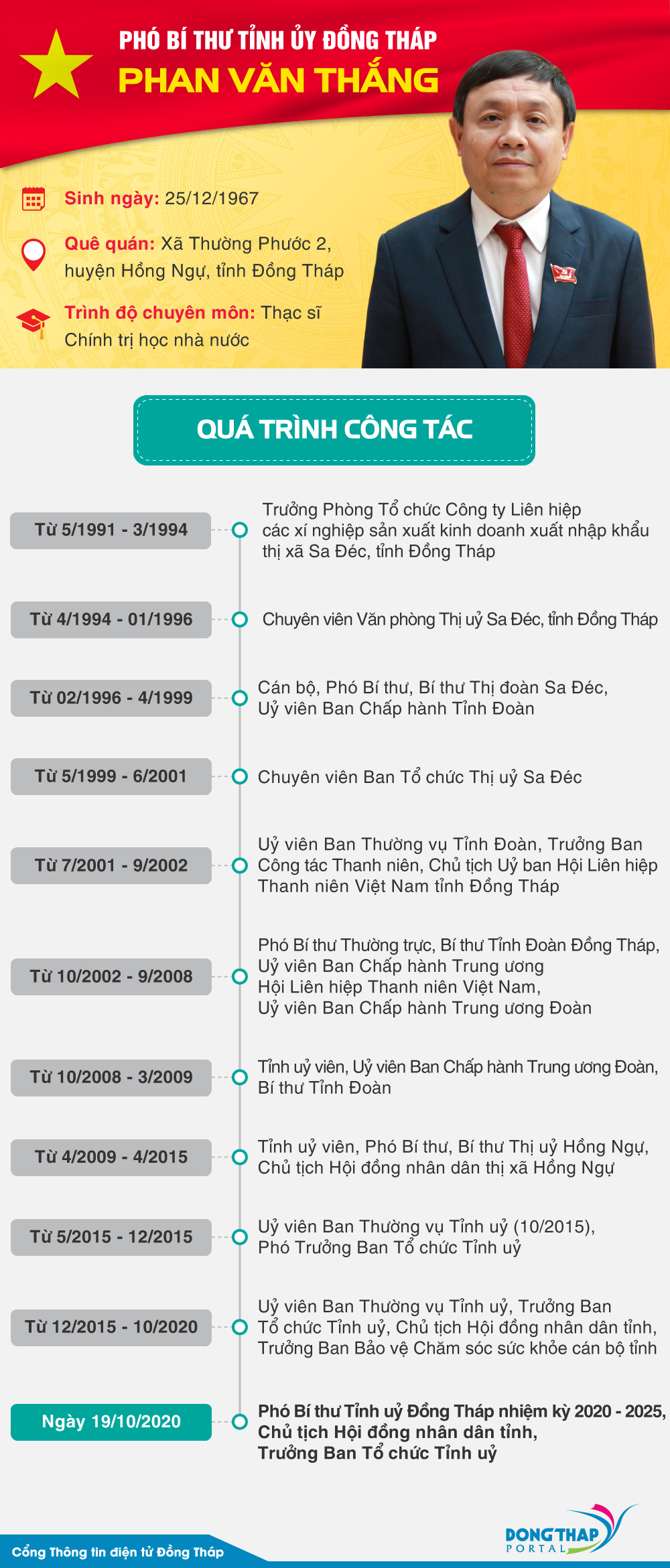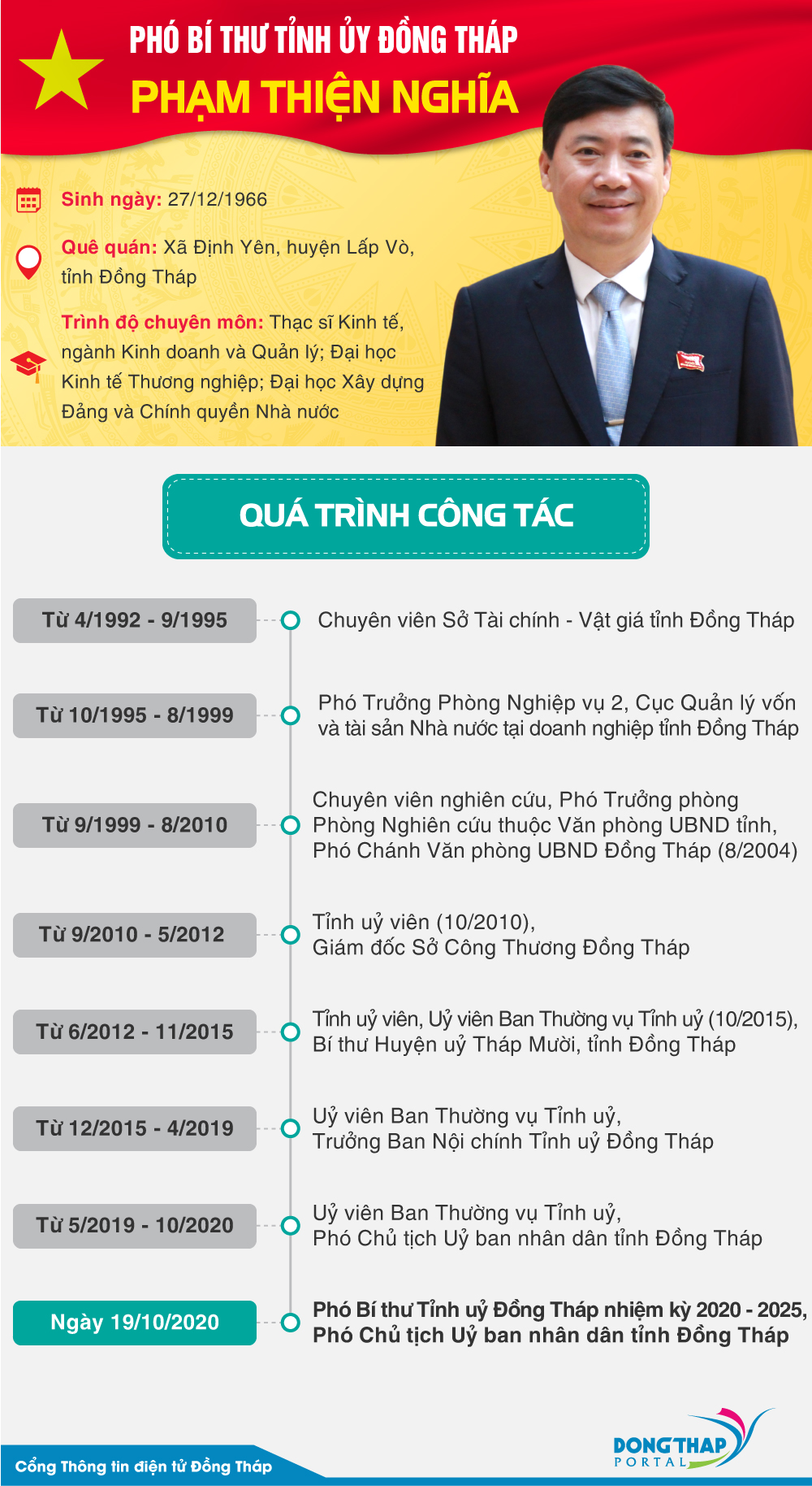 Tại Hội nghị lần thứ nhất, Ban Chấp hành Đảng bộ tỉnh khoá XI đã bầu đồng chí Phan Văn Thắng - Uỷ viên Ban Thường vụ Tỉnh uỷ khoá X, Trưởng Ban Tổ chức Tỉnh uỷ, Chủ tịch Hội đồng nhân dân tỉnh và đồng chí Phạm Thiện Nghĩa - Uỷ viên Ban Thường vụ Tỉnh uỷ khoá X, Phó Chủ tịch Uỷ ban nhân dân tỉnh giữ chức Phó Bí thư Tỉnh uỷ nhiệm kỳ 2020 - 2025. Mời xem chân dung 02 tân Phó Bí thư Tỉnh uỷ Đồng Tháp tại Infographic dưới đây.