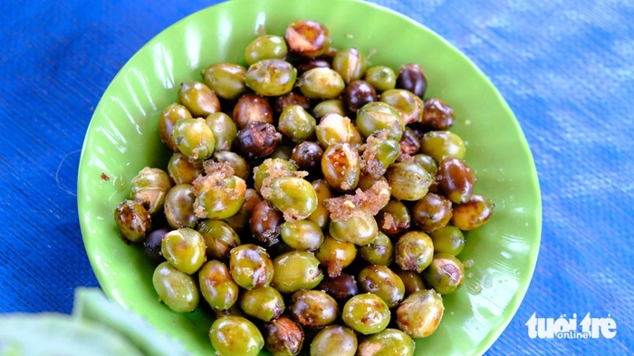 Hạt sen cháy tỏi ớt ăn có vị bùi, thơm, mặn, cay lạ miệng - Ảnh: ĐẶNG TUYẾT