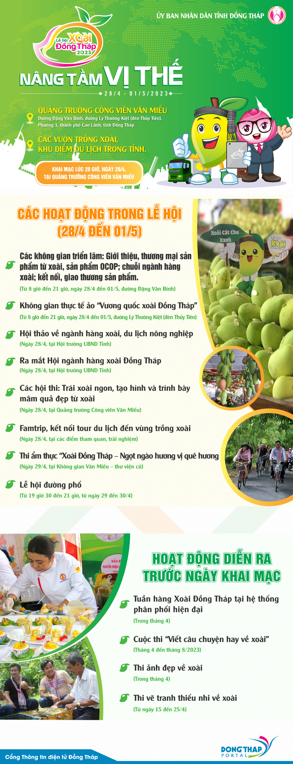 Lễ hội Xoài Đồng Tháp năm 2023, với chủ đề "Xoài Đồng Tháp - Nâng tầm vị thế", diễn ra từ ngày 28/4 đến ngày 01/5.