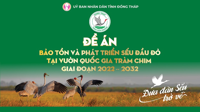 Sếu đầu đỏ là một trong 15 loài sếu hiện đang tồn tại trên thế giới, hiện đang được xếp vào nhóm cận nguy cấp trong Sách đỏ thế giới của tổ chức IUCN. Để bảo tồn loài Sếu quý hiếm này, có ý nghĩa quan trọng trong bảo tồn đa dạng sinh học, phát triển hệ sinh thái đặc trưng của tỉnh Đồng Tháp, Ủy ban nhân dân tỉnh đã phê duyệt Đề án bảo tồn và phát triển Sếu đầu đỏ tại Vườn Quốc gia Tràm Chim giai đoạn 2022 – 2032.