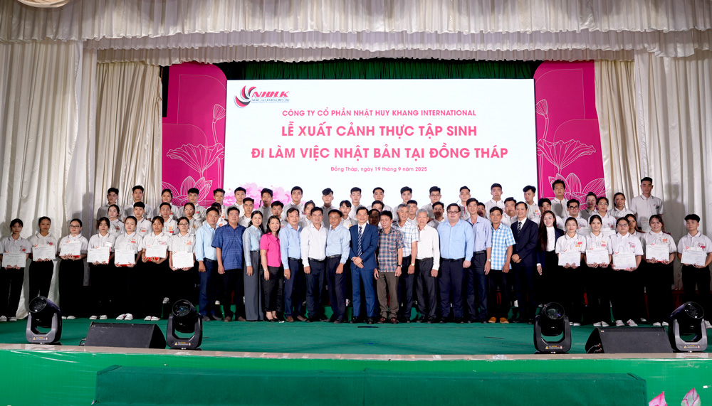 Chiều ngày 19/9, tại phường Cao Lãnh, tỉnh Đồng Tháp, Công ty Cổ phần Nhật Huy Khang International long trọng tổ chức Lễ Xuất cảnh cho 50 thực tập sinh đi làm việc tại Nhật Bản, trong đó có 37 thực tập sinh Đồng Tháp.