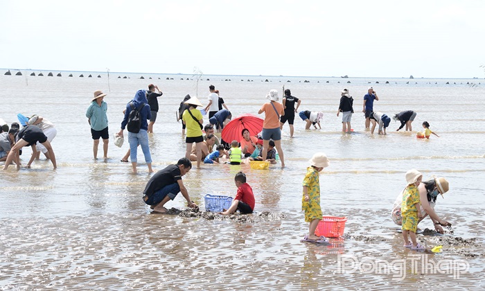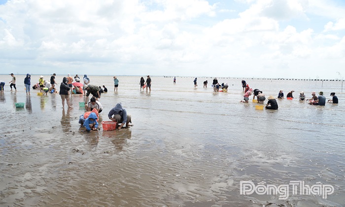 Du khách trải nghiệm cào nghêu tại biển Gò Công