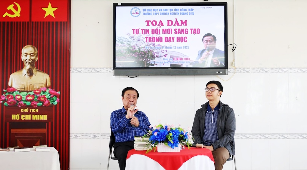 Trong chuyến công tác tại tỉnh Đồng Tháp, ngày 14/12, Ủy viên Trung ương Đảng, Phó Chủ tịch Quốc hội Lê Minh Hoan đã đến thăm, gặp gỡ và trò chuyện cùng giáo viên Trường Trung học phổ thông chuyên Nguyễn Quang Diêu về chủ đề: “Tự tin đổi mới sáng tạo trong giáo dục”.
