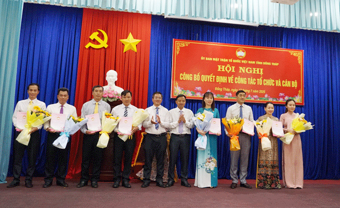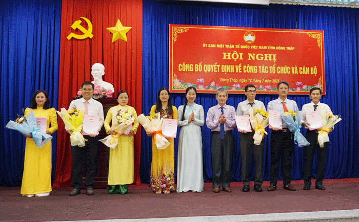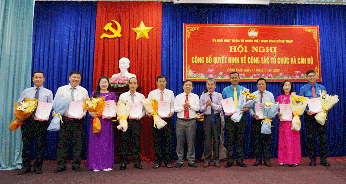 Chiều ngày 17/7, Ban Thường trực Ủy ban Mặt trận Tổ quốc Việt Nam tỉnh Đồng Tháp tổ chức Hội nghị công bố quyết định thành lập cơ quan, các Ban trực thuộc cơ quan Ủy ban Mặt trận Tổ quốc Việt Nam tỉnh và các quyết định về nhân sự các Ban trực thuộc cơ quan Ủy ban Mặt trận Tổ quốc Việt Nam tỉnh.