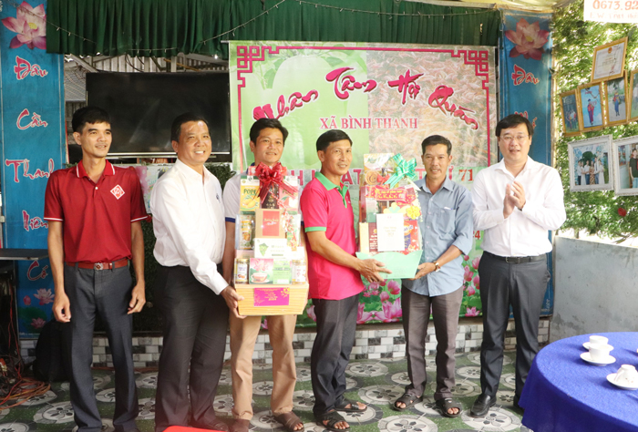 Trong không khí vui tươi, phấn khởi của những ngày đầu xuân, Bí thư Tỉnh uỷ Lê Quốc Phong được nghe các thành viên Hội quán chia sẻ về kết quả một năm sản xuất xoài, chanh, sầu riêng, hoa kiểng và cá Điêu hồng.