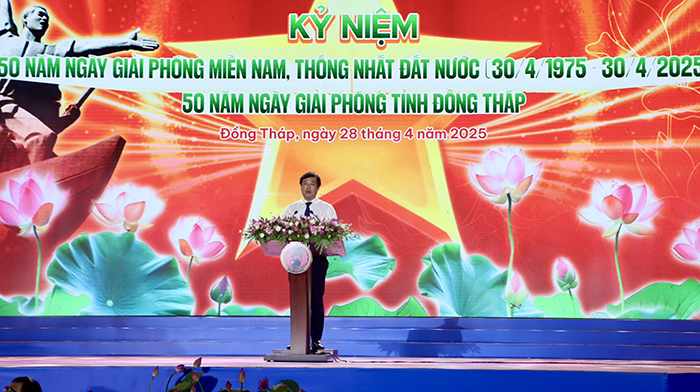 Tại Lễ kỷ niệm 50 năm Ngày giải phóng hoàn toàn miền Nam, thống nhất đất nước (30/4/1975 - 30/4/2025) và 50 năm Ngày giải phóng tỉnh Đồng Tháp, đồng chí Lê Quốc Phong - Ủy viên Ban Chấp hành Trung ương Đảng, Bí thư Tỉnh ủy, Trưởng Đoàn đại biểu Quốc hội tỉnh Đồng Tháp có bài phát biểu quan trọng. Cổng Thông tin điện tử Đồng Tháp trân trọng giới thiệu toàn văn.