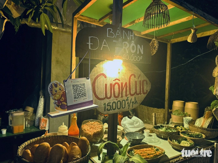 Các gian hàng được trang trí bằng vật liệu thân thiện với môi trường, nhưng cũng có mã QR thanh toán điện tử