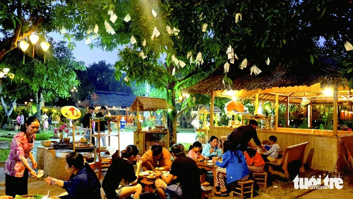 Du khách ăn uống tại không gian đêm Tây Thuận Tây dưới tán xoài trĩu quả