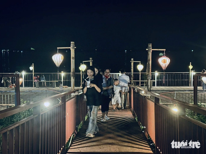 Du khách hóng mát tại bến sông Tiền, trong Không gian đêm Tân Thuận Tây