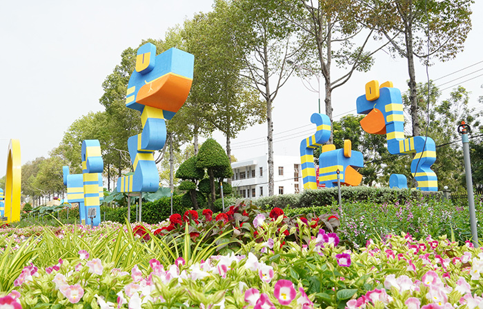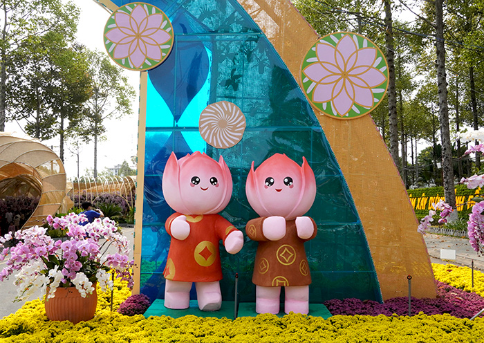 Hàng loạt đại cảnh và tiểu cảnh được thiết kế tinh tế, mang đậm chất văn hóa Đất Sen hồng, từ hình ảnh linh vật rắn mềm mại uốn lượn đến những mô hình bé Sen rực rỡ, mang lại năng lượng tràn đầy và sự vươn lên mạnh mẽ