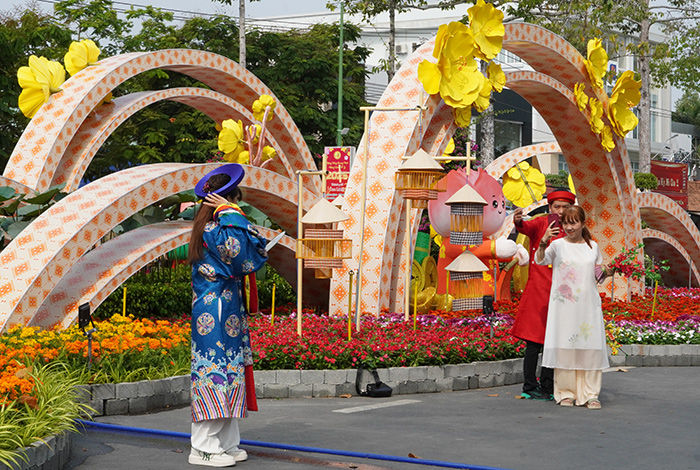 Sau một ngày khai mạc, Đường hoa xuân thu hút hàng nghìn người dân, du khách đến tham quan, chụp ảnh và cùng nhau gửi gắm lời chúc bình an, may mắn cho năm mới 2025. Đường hoa xuân sẽ kéo dài đến hết mùng 5 Tết.