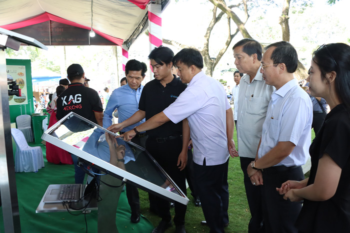 Lãnh đạo tỉnh tại gian hàng giới thiệu nền tảng chuyển đổi số nông nghiệp