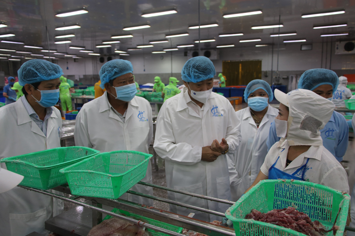 Chủ tịch Ủy ban nhân dân tỉnh Phạm Thiện Nghĩa thăm hỏi công nhân và động viên doanh nghiệp