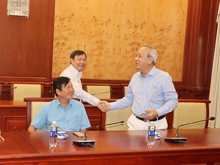 Phó Bí thư Thường trực Tỉnh ủy Phan Văn Thắng vui mừng đón tiếp các đại biểu và những người con quê Đồng Tháp đến dự buổi họp mặt hội đồng hương