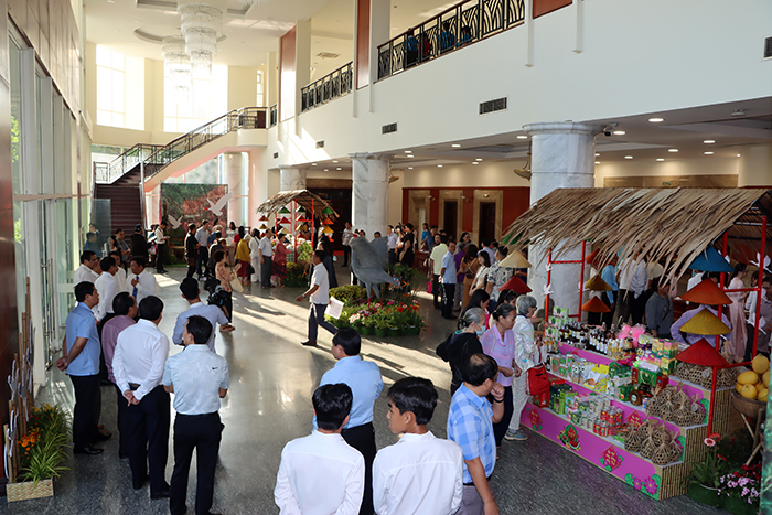 Bà con đồng hương thích thú các sản phẩm quà tặng lưu niệm đặc trưng của Đồng Tháp