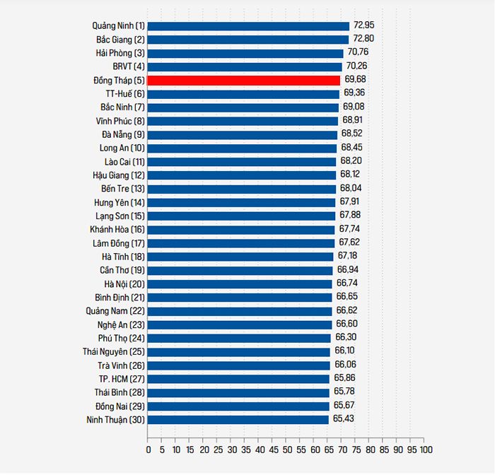 Top 30 địa phương có chất lượng điều hành tốt nhất. Đồng Tháp đứng thứ 5