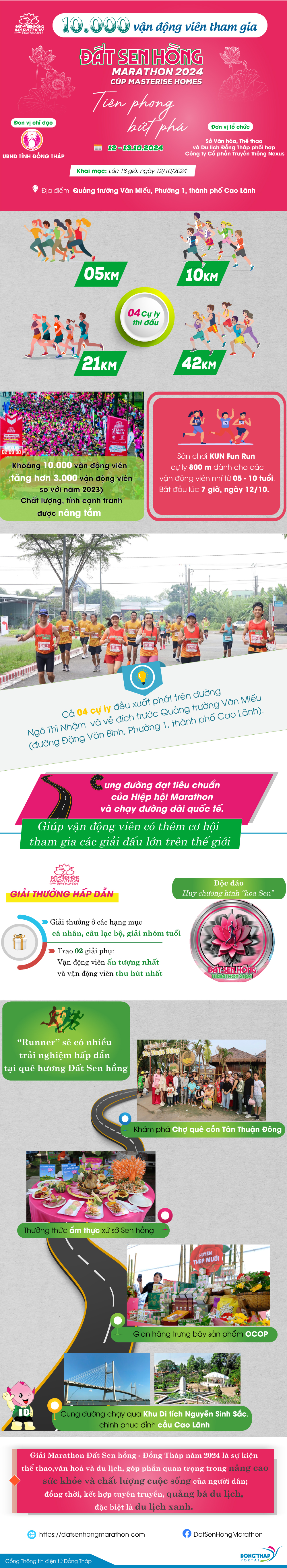 Giải Marathon Đất Sen hồng - Đồng Tháp năm 2024, với chủ đề “Tiên phong - Bứt phá” sẽ diễn ra vào ngày 12 - 13/10 tại thành phố Cao Lãnh. Đây là lần thứ 3 giải được tổ chức tại Đồng Tháp. Đây là sự kiện thể thao, văn hoá và du lịch, góp phần quan trọng trong nâng cao sức khỏe và chất lượng cuộc sống của người dân; đồng thời, kết hợp tuyên truyền, quảng bá du lịch, đặc biệt là du lịch xanh.