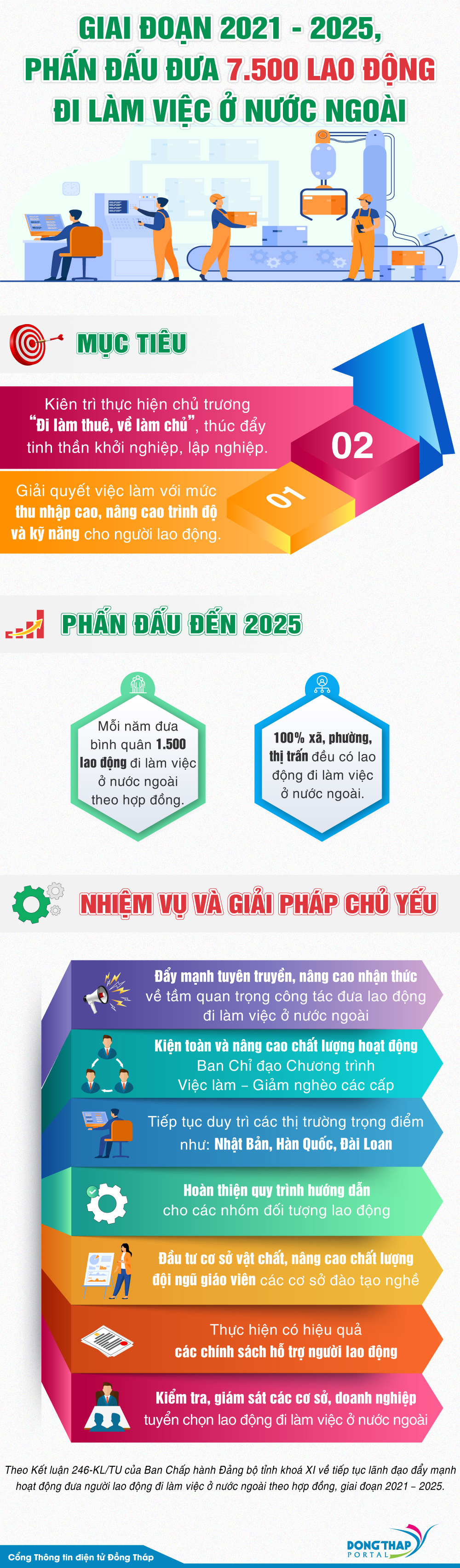 Cùng với mục tiêu trên, tỉnh sẽ tiếp tục duy trì các thị trường trọng điểm như: Nhật Bản, Hàn Quốc, Đài Loan; thực hiện có hiệu quả các chính sách hỗ trợ người lao động v.v.. Mời xem [Infographic].