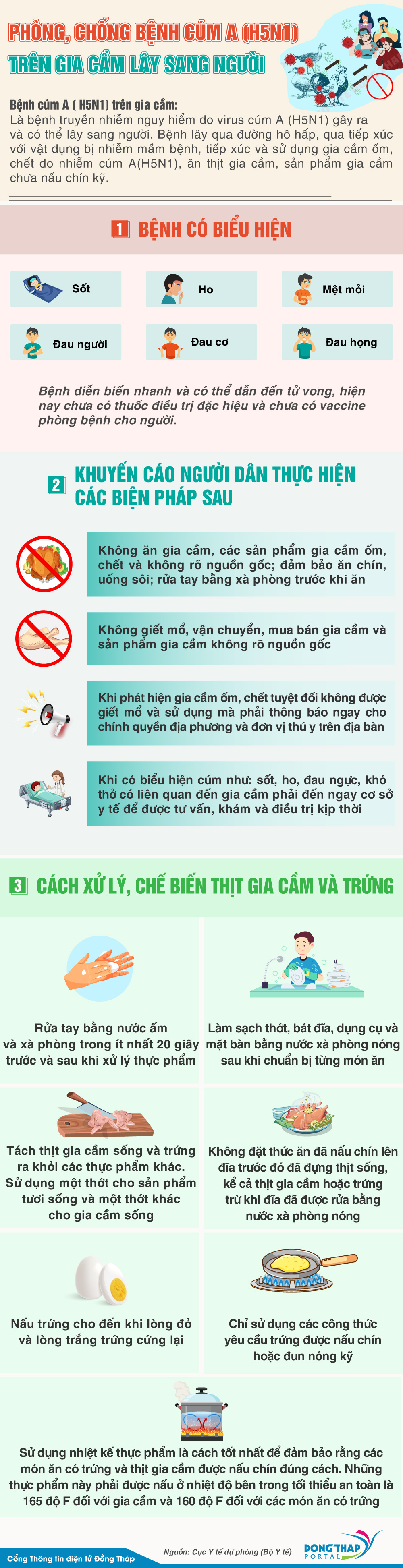 [Infographic] Phòng, chống bệnh cúm A (H5N1) trên gia cầm lây sang người
