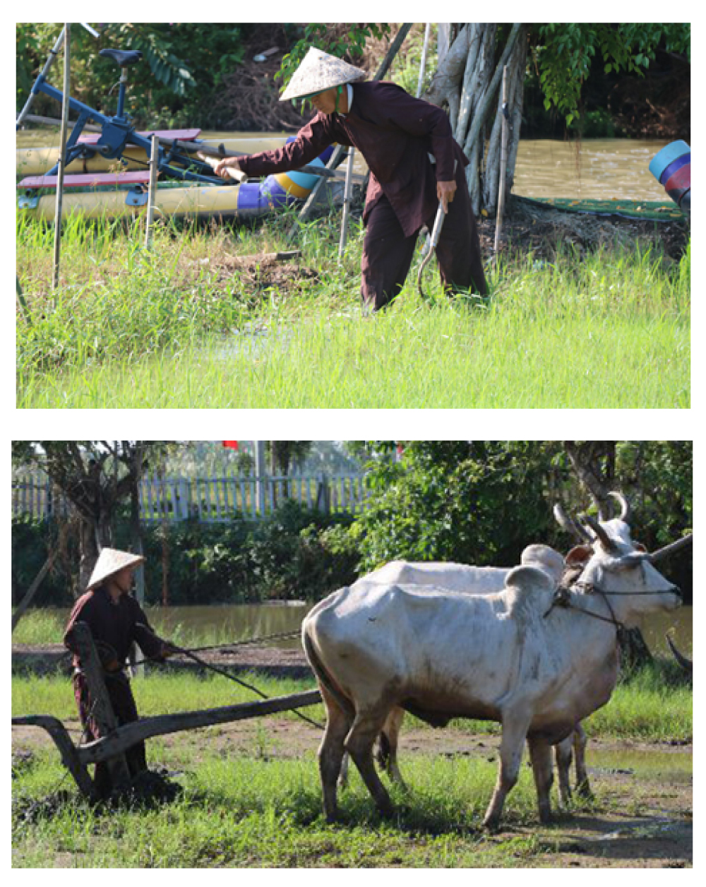 Khám phá xong nét độc đáo tại chợ chiếu ma, du khách sẽ dừng chân tại Khu Du lịch văn hóa Phương Nam để xem show diễn văn hóa lúa nước - nghề làm nông của ông cha ta ngày xưa. Không gian nơi đây được tái hiện sinh động với người nông dân cày đất thủ công bằng cái cày, con trâu; phát cỏ bằng cây phảng và cấy lúa thủ công bằng tay v.v..