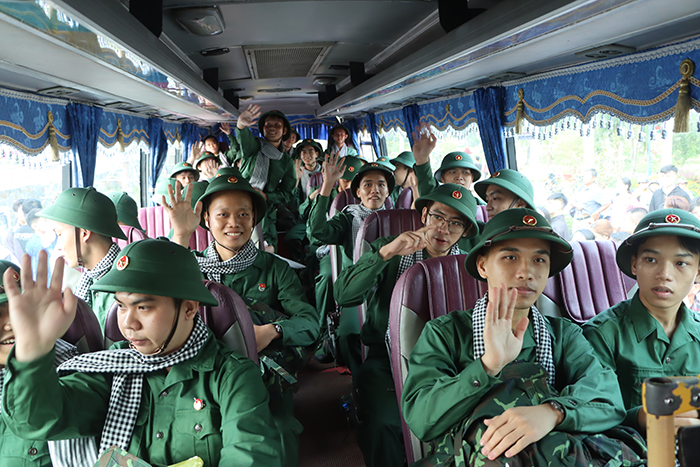 Các tân binh vẫy tay chào thể hiện sự tự hào khi được trở thành người lính Cụ Hồ và quyết tâm hoàn thành thật tốt sứ mệnh thiêng liêng của Tổ quốc giao cho