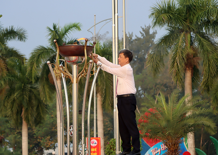 Bí thư Thành ủy Sa Đéc Phạm Văn Chuẩn thực hiện nghi thức thắp lửa truyền thống