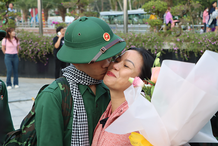 Trong giây phút chia tay, những nụ cười, cái ôm, nụ hôn được các tân binh gửi tặng cho người thân, bạn bè