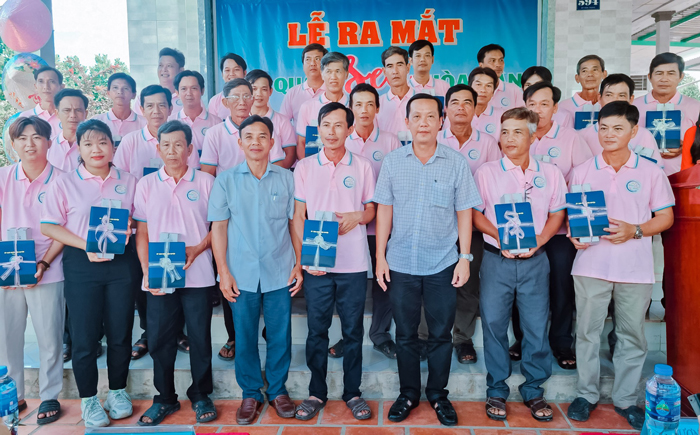 Các đại biểu chụp ảnh lưu niệm tại buổi ra mắt Hội quán sen Hòa Tân.