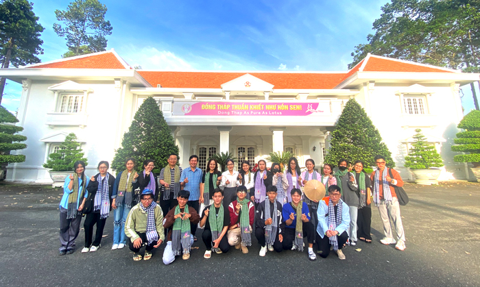 Cả đoàn phấn chấn, ríu rít cùng lãnh đạo tỉnh chụp ảnh lưu niệm và check các góc quán. Sinh viên Nguyễn Tuấn Sinh - Lớp trưởng của lớp K14LHA1 tâm tình “Em thật sự bất ngờ và cảm kích. Tụi em thức dậy từ 3 giờ, di chuyển vào Sài Gòn, xuống cồn Thới Sơn (Tiền Giang) rồi khu di tích Cụ Phó bảng Nguyễn Sinh Sắc (thành phố Cao Lãnh). Quá oải nhưng bao nhiêu mệt nhọc tan biến vì được đón tiếp quá nồng hậu. Lần đầu tiên em được vào trong khuôn viên Ủy ban nhân dân tỉnh Đồng Tháp, gặp gỡ lãnh đạo, dùng cà phê và thưởng thức đặc sản của tỉnh như một vị khách VIP và còn được tặng khăn rằn - sản phẩm thủ công của làng nghề truyền thống tuổi đời hơn trăm năm tại huyện Hồng Ngự; làm cho chuyến đi càng thêm ý nghĩa hơn”.
