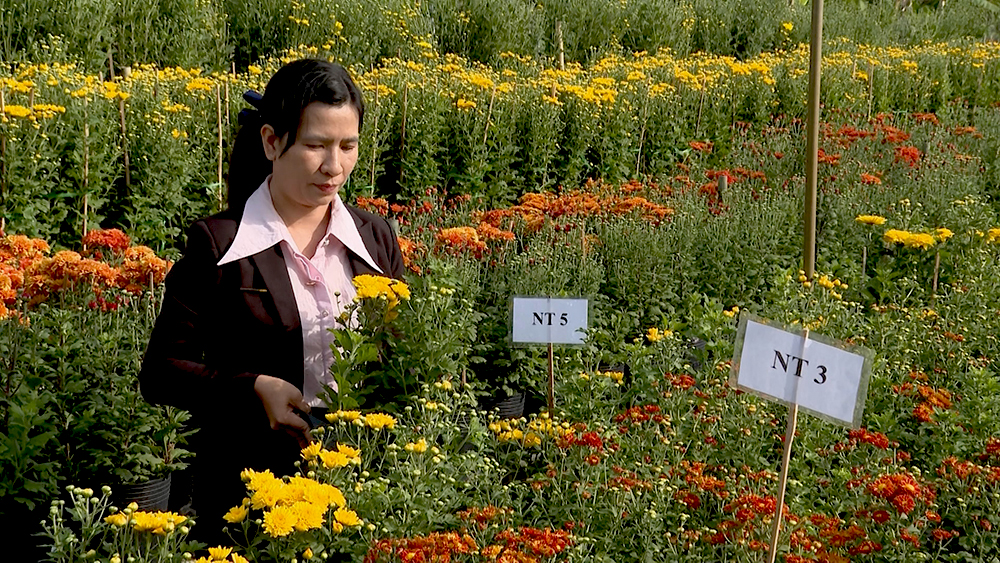 Đối với hoa cúc, bốn dòng giống mới gồm: đỏ đậm, cam, đỏ tâm vàng và vàng tươi được trồng thử nghiệm với quy mô 1.000 chậu. Sau khoảng 80 ngày chăm sóc, tỷ lệ hoa thương phẩm đạt từ 90 - 95%, cho thấy khả năng thích nghi tốt, màu sắc đẹp và chất lượng ổn định. Song song đó, giống hoa hồng Lửa – từng có nguy cơ mai một cũng được “hồi sinh” và cải tiến, tạo ra sáu dòng hoa mới với sức sinh trưởng mạnh, màu sắc đa dạng, cho tỷ lệ thương phẩm cao hơn giống đối chứng.