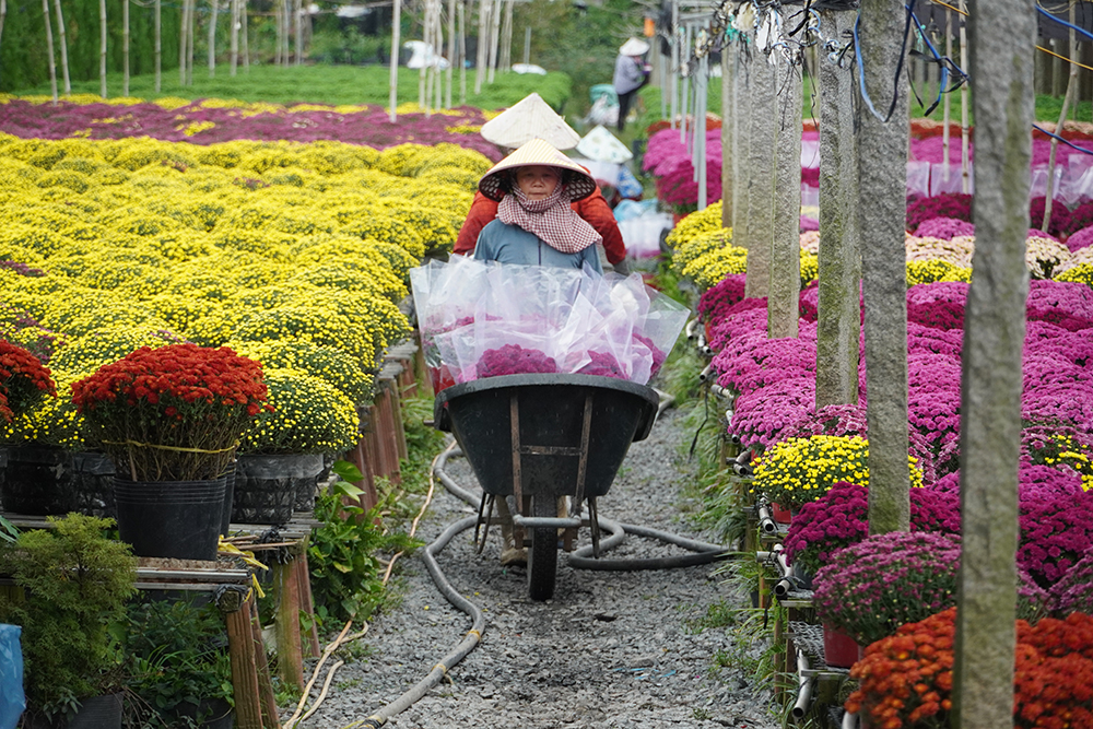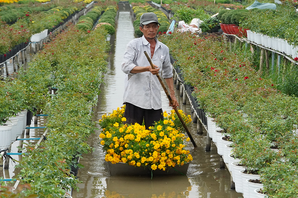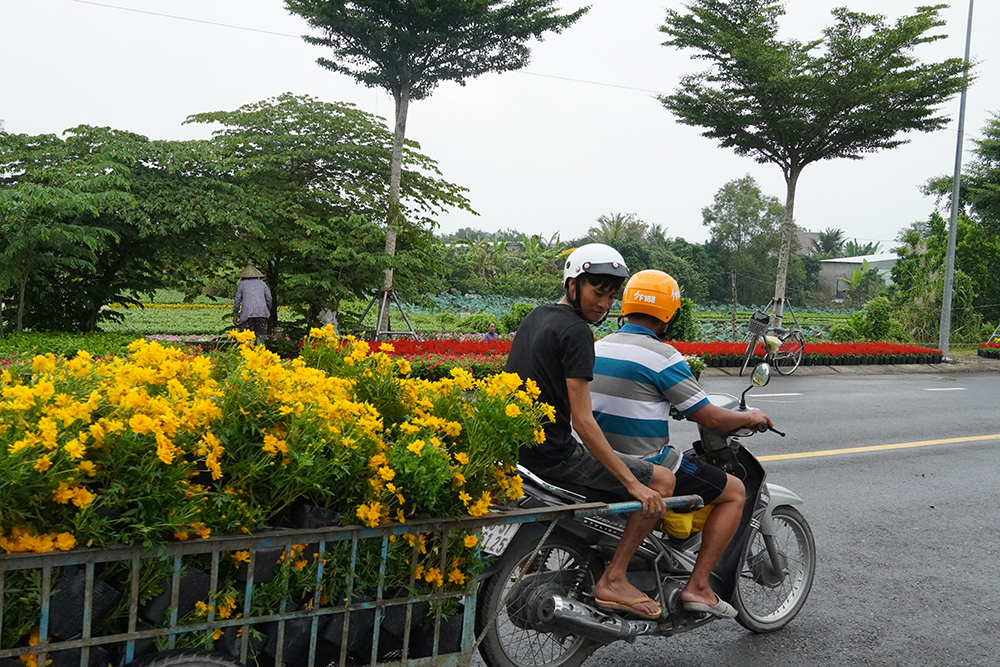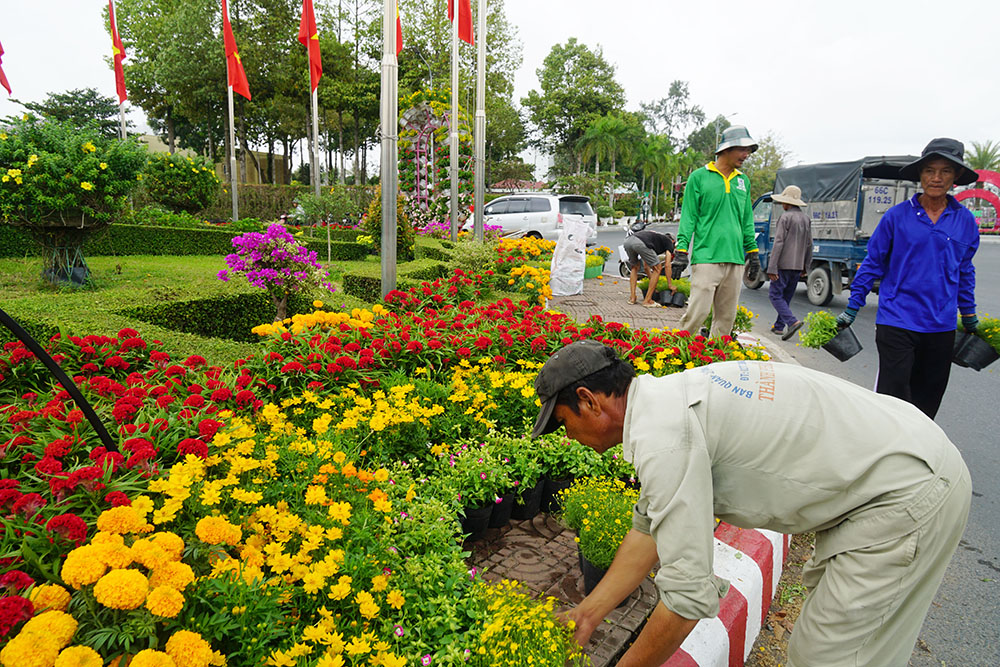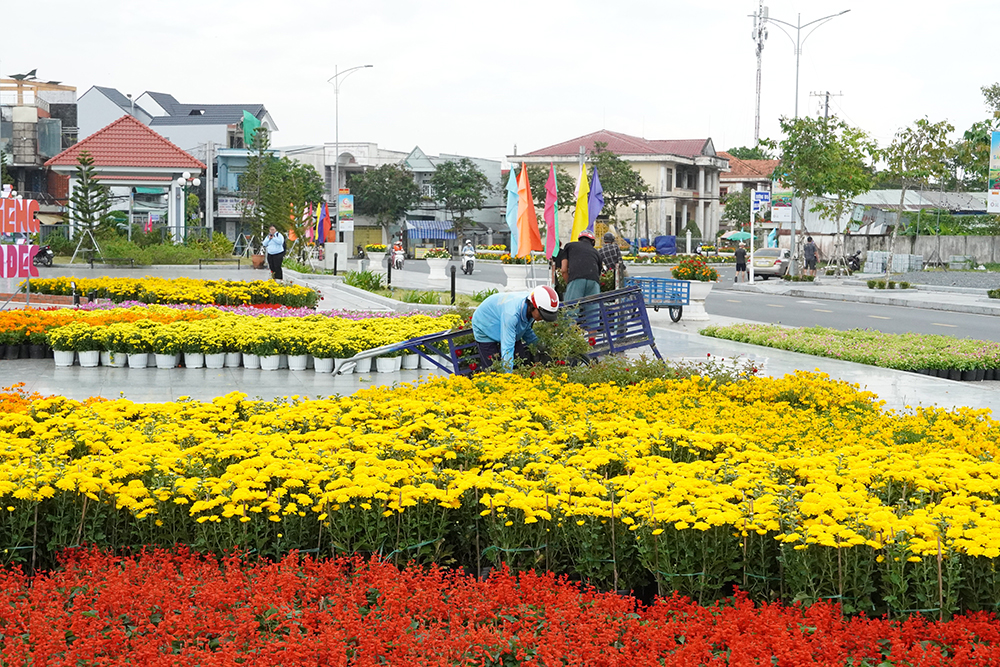 Người dân làng hoa Sa Đéc tất bật vận chuyển hoa kiểng ra trưng bày, trang trí dọc các tuyến đường, tạo nên không gian lễ hội ngập tràn sắc xuân và hương hoa đặc trưng của “thủ phủ hoa miền Tây”