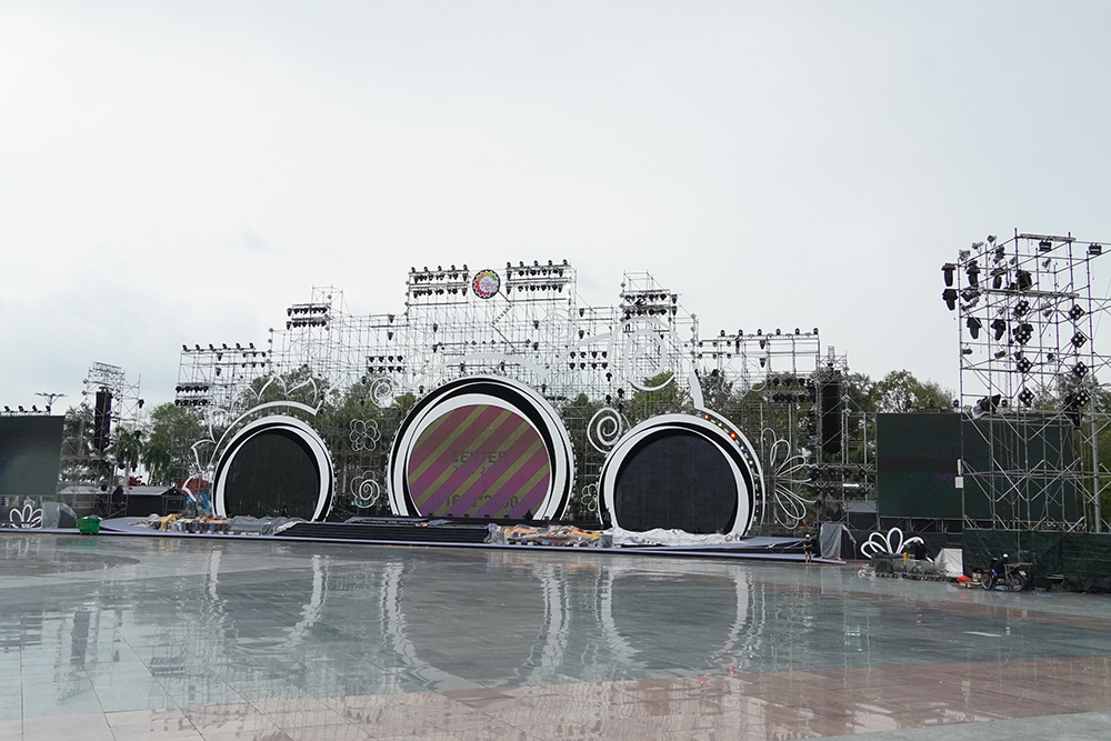 Khu vực sân khấu nơi diễn ra lễ khai mạc Festival cũng đang được gấp rút hoàn thiện