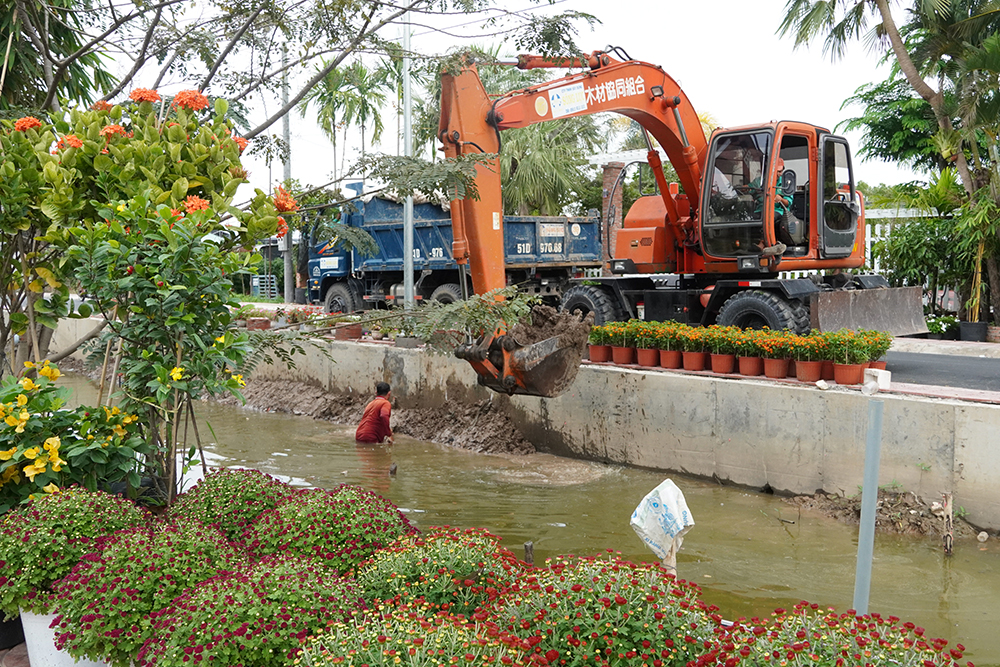 Các tiểu cảnh hoa, mô hình trang trí nghệ thuật đang được khẩn trương thi công tại khu vực Quảng trường Sa Đéc – không gian trung tâm diễn ra nhiều hoạt động chính của Festival